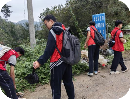 活动当天,阳光明媚,参与活动的志愿者们热情高涨。在团委老师和地理社老师们的带领下,同学们身穿志愿者服装,手持垃圾袋、夹子等工具,沿着 “胡家沟 — 官山坪断层” 徒步前行,仔细搜寻隐藏在草丛、石缝中的垃圾。大家分工协作,有的负责清理白色塑料垃圾,有的专注于捡拾废弃纸巾、饮料瓶等,不放过任何一个卫生死角。尽管山路崎岖,垃圾清理难度较大,但志愿者们始终保持着积极的态度,相互鼓励,认真完成每一处的清理工作。