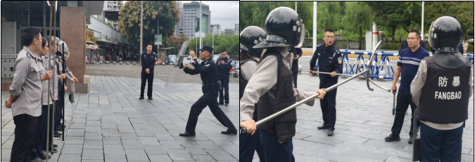 演练结束后,四位警官对保安们的实操表现进行了细致点评,肯定了处置过程中的优点,同时指出了操作中存在的不足,并现场示范纠正,进一步提升了保安们的实际操作水平和协同作战能力。​