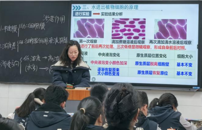 2025年12月10日,高2028届生物组全体教师集体观摩了黄海娥老师执教的《被动运输——水进出细胞的原理》公开课。本节课以渗透作用为核心,贯穿科学探究主线,实现了从抽象原理到具象认知、从学科知识到素养提升的有机融合,充分展现了教师扎实的专业功底与先进的教学理念。