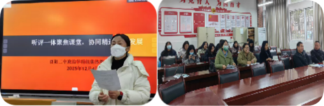 2025 年 12 月 4 日,在政治学科委员会主任叶老师的统筹组织下,酉阳二中高一、高二、高三全体政治教师齐聚一堂,共同开展以 “听评一体聚焦课堂,协同精进共谋发展”为主题的集体大教研活动。活动通过“示范课展示与评课”“分级工作总结与计划汇报”两大核心环节,构建“听—评—研—思”闭环,为学科教学提质增效奠定坚实基础。