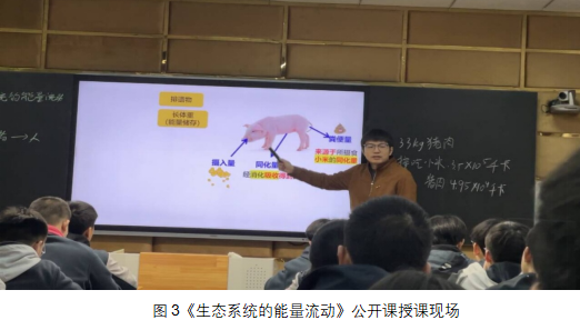课堂教学中,石老师以“小米→猪→人”的食物链为主线,层层拆解生态系统能量的输入、传递、转化与散失全过程,通过图表分析、小组讨论、数据计算等环节,带领学生扎实掌握能量流动单向流动、逐级递减的核心特点,突破营养级能量传递、能量金字塔等教学重难点,将抽象的生物学概念转化为具象的生活实例,降低知识理解难度,强化学生科学思维与探究能力。
