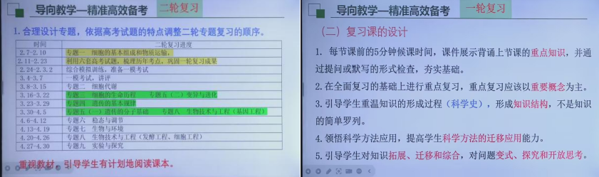 围绕精准高效备考,王舒老师分一轮、二轮、三轮给出可落地、可操作的实施策略。一轮复习强调紧扣教材、精读细研,要求全面覆盖教材正文、插图、探究实践、思考讨论、旁栏思考等内容,以核心概念为纽带构建结构化知识体系,对比辨析易混概念,打破章节壁垒实现知识整合;二轮复习突出专题突破、能力升级,按细胞代谢、遗传规律、稳态与调节、生物技术与工程等模块设计专题,依托课标制作双向细目表,针对不定项选择、遗传题、实验探究题等薄弱点开展午练专项与小早读默写,聚焦能力短板精准发力;三轮复习注重全真模拟、查漏补缺,严格对标高考节奏组织模拟训练,讲评聚焦高频错题,强化归因分析与答题建模,长句表达题抓“因果桥”逻辑,图表题抓 “看轴、看线、看点”方法,遗传题抓解题模型构建,实现错题清零、规范提分。