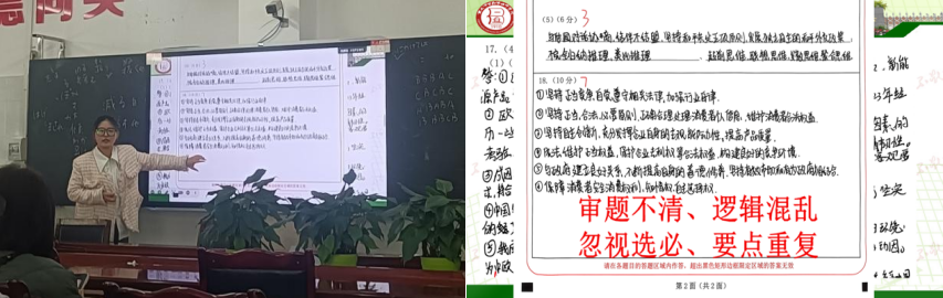 成绩与问题:整体完成情况良好,但存在“审题不清、逻辑混乱、忽视选必知识、要点重复”等问题;主观题暴露逻辑链条不完整、思维定势严重。