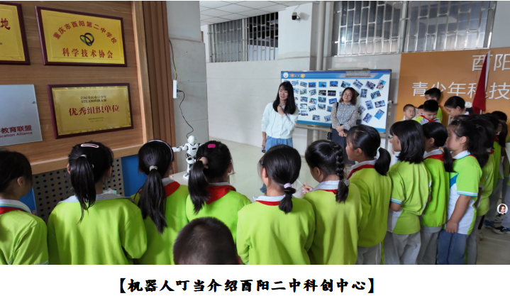 活动伊始,酉阳二中科创中心专属 “宣传员”—— 机器人叮当率先登场,用生动的讲解为同学们介绍了酉阳二中科创中心的发展及现状。随后,技装处曾晓容主任带领大家走进科技创新作品展览室,重点展示了历届学生的科创硕果:斩获市级青少年科技创新大赛一等奖的微型智能油粑粑机、基于空间电荷效应的自清洁油烟净化器模型等,以及在全国学生信息素养提升实践活动中获奖的 “低成本多功能梦幻 LED 灯光屏” 等一系列作品依次亮相。同学们穿梭其间,或驻足观察细节,或热议创作思路,对科技的好奇与探索欲被瞬间点燃。
