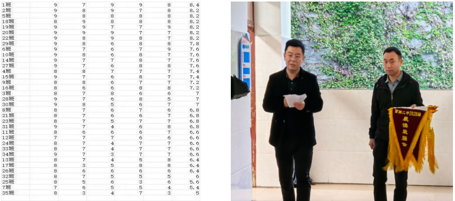 2.仪式与激励:隆重的颁奖仪式为优胜班级授予了“晨读最强音”流动红旗,极大地激发了学生的集体荣誉感。