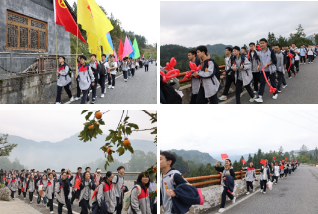 近日,为深入践行素质教育理念,锤炼学生意志品质,增强集体凝聚力,我校高2027届全体师生近2000人,共同开展了以“追寻红色足迹,共筑青春梦想”为主题的远足拉练活动。队伍自学校启程,沿酉兴路行进,最终抵达鹿角坪教育基地,全程约30公里。