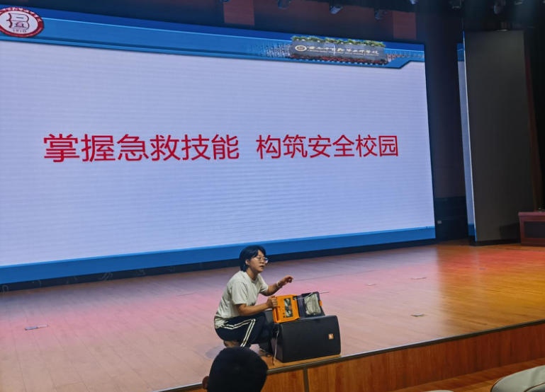 本次培训内容丰富实用,涵盖如何正确拨打120急救电话、小伤口处理、流鼻血应急处理、海姆立克急救法等基础急救知识,重点讲解了晕倒等突发情况的判断与处置方法,并现场演示了AED(自动体外除颤器)的使用技巧。张菊医生通过理论讲解与实操演示相结合的方式,让同学们深刻体会到急救知识的重要性。