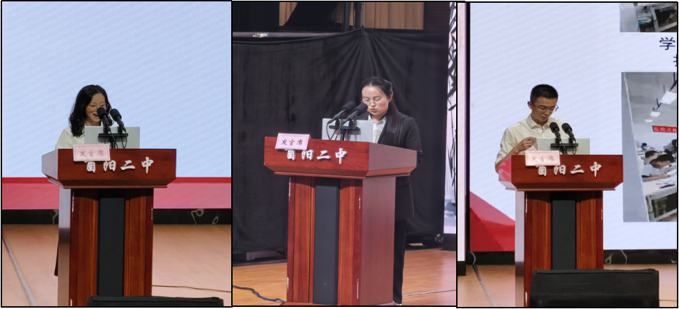 第二项议程邀请优秀班主任代表发言。黄海娥老师以“守好‘第一学期’,筑牢班级根基”为主题,从班级文化建设切入,分享班委组建与培养、借集体活动凝聚班魂、联动科任老师实现合作共赢,以及用“有温度的鸡汤”传递信念的实践方法;冉琼琳老师围绕“做一名有温度的班级管理者”,结合案例阐释对“教育不是灌满一桶水,而是点燃一团火”的理解,强调用关爱激发学生内驱力;熊振峰老师以“四化”润丹田、“三步”自成蹊为题,通过“四化筑基,三步推进” 框架,从“四化”并举筑牢管理之基、“三步”阶梯抵达育人之境两个层面,分享班级管理与育人经验。三位代表的分享为全体班主任提供了实用参考,激发工作热情。