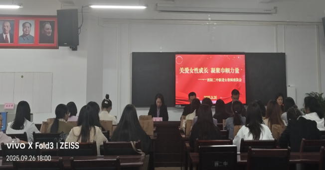 座谈会伊始,薛校长发表了热情洋溢的欢迎辞。他首先代表学校对全体新进女教师的加入表示热烈欢迎,并结合自身的工作经历,强调了教育人共同的使命与追求。薛校长阐述了他倡导的“校园有温度、教师有厚度、教育有深度”的“三度”目标,希望新教师们能迅速融入酉阳二中这个大家庭,用微笑传递温暖,用专业积淀厚度,用智慧探索深度,共同为建设更美好的校园贡献力量。
