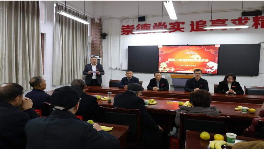 值此金秋送爽、丹桂飘香的重阳佳节,酉阳二中校园里洋溢着温馨与欢乐的气氛。为弘扬中华民族尊老、敬老、爱老的优良传统,10月29日下午,我校特别邀请了全体退休教师重返校园,共同见证学校近年来的发展成果,感受鲁渝教育协作带来的新变化。学校党政班子成员出席会议,以一场温馨而庄重的活动,致敬教育前辈,传承育人精神。