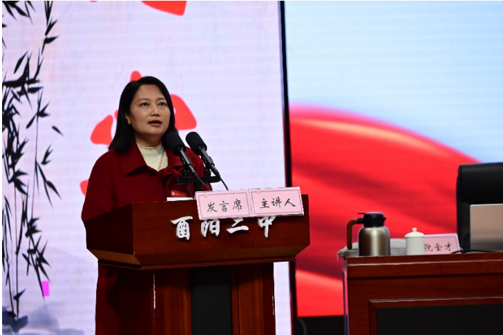 副校长高旭首先向酉阳县桃花源文旅投资集团公司和《民族文学》酉阳创阅中心参会人员表示热烈的欢迎和衷心的感谢。她表示,民族文化宝库源远流长、博大精深,学习民族文化能够帮助高中生树立正确的世界观、人生观和价值观,培养高中生的民族自豪感和爱国情怀,增强文化自信,激发创造力和想象力,为未来发展奠定坚实的基础。她强调,民族文化进校园也是学校落实立德树人根本任务、推进素质教育的重要举措。学校是传承和弘扬民族文化的重要阵地,我们有责任、有义务将民族文化融入到教育教学的全过程,让广大师生在学习和实践中感受民族文化的魅力,传承和弘扬民族精神。
