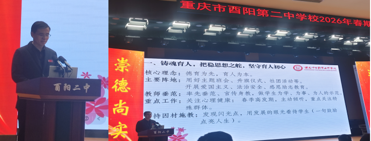 2026年是学校“优质提升年”。为进一步加强班主任队伍建设,提升班级管理与德育工作质效,落实“教师有温度、课堂有深度、发展有高度”的三度目标,3月13日,我校召开全校班主任工作会议。学校党委副书记、校长薛天涛,工会主席吴小华,德育处主任赵洪明,各级部主任及全体班主任参会。