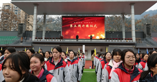 晨曦微露,全体师生整齐列队、面向国旗肃立。伴随着雄壮的《中华人民共和国国歌》,五星红旗冉冉升起,全体师生行注目礼,心中满含对革命先烈的缅怀与对祖国的赤诚热爱。国旗礼毕后,酉阳二中校旗缓缓升起,悠扬的校歌响彻操场,师生齐声高唱,凝聚奋进力量,开启本周的学习与生活。